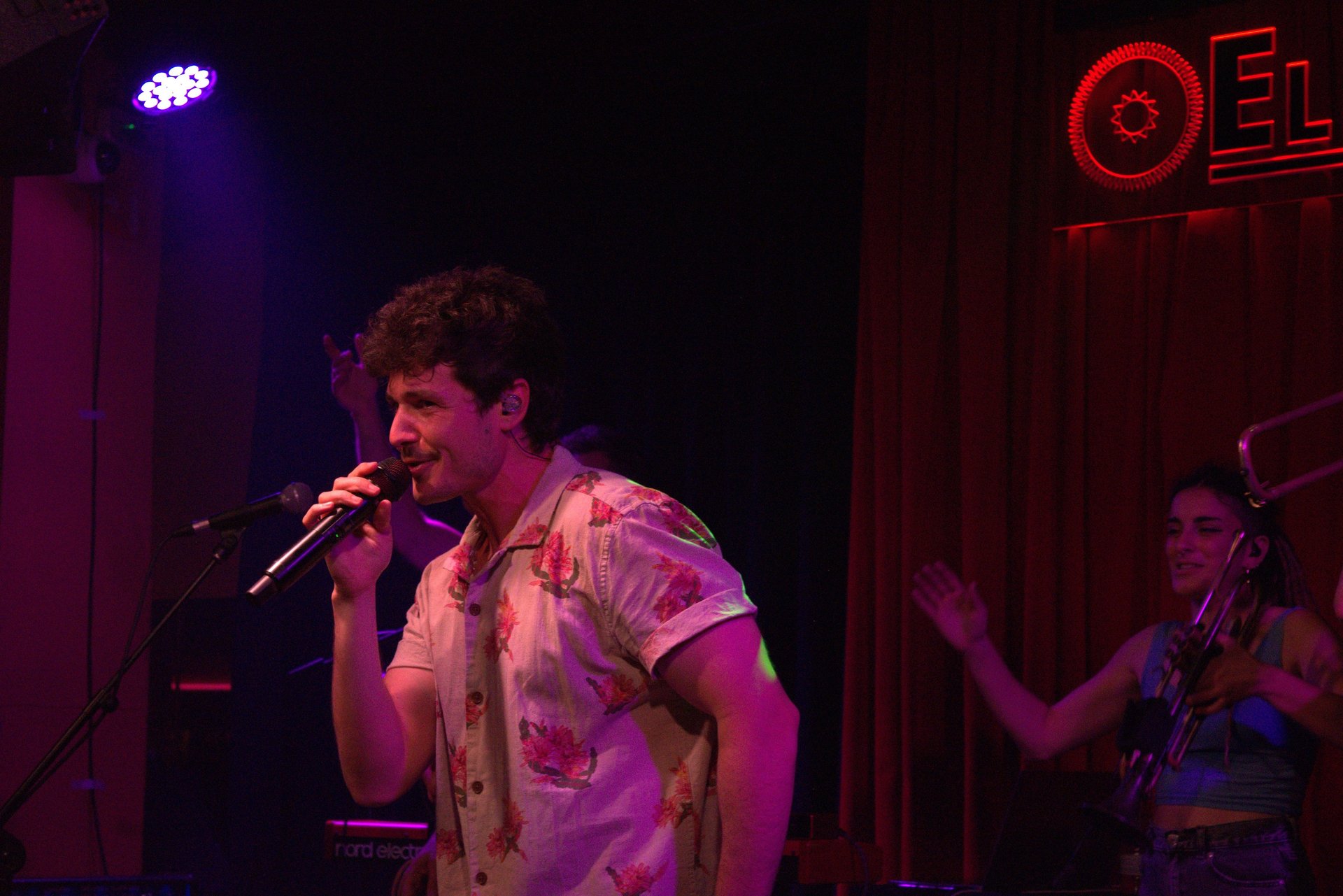 Las luces se apagaron y comenzó el Showcase con una de las canciones más reconocibles del artista, la representante de España en Eurovisión 2019, “La Venda”. El escenario se llenó con la gran presencia escénica de Miki y su banda; las trompetas, guitarras y la batería te transportaban directamente a las fiestas mayores de algún barrio de Terrassa. La complicidad de los músicos se transmitía con el público y canción a canción Miki nos transportaba por el proceso creativo de “121”. El amor es el principal protagonista de este disco y en el propio nombre va incluido una referencia a este. 121 días o 4 meses es el tiempo que está demostrado que dura el amor químico y todas estas canciones crean una alegoría al amor y a la belleza de este, intentando alejarse del odio y de las críticas, para centrarse en los errores y en las alegrías que conlleva el enamorarse.